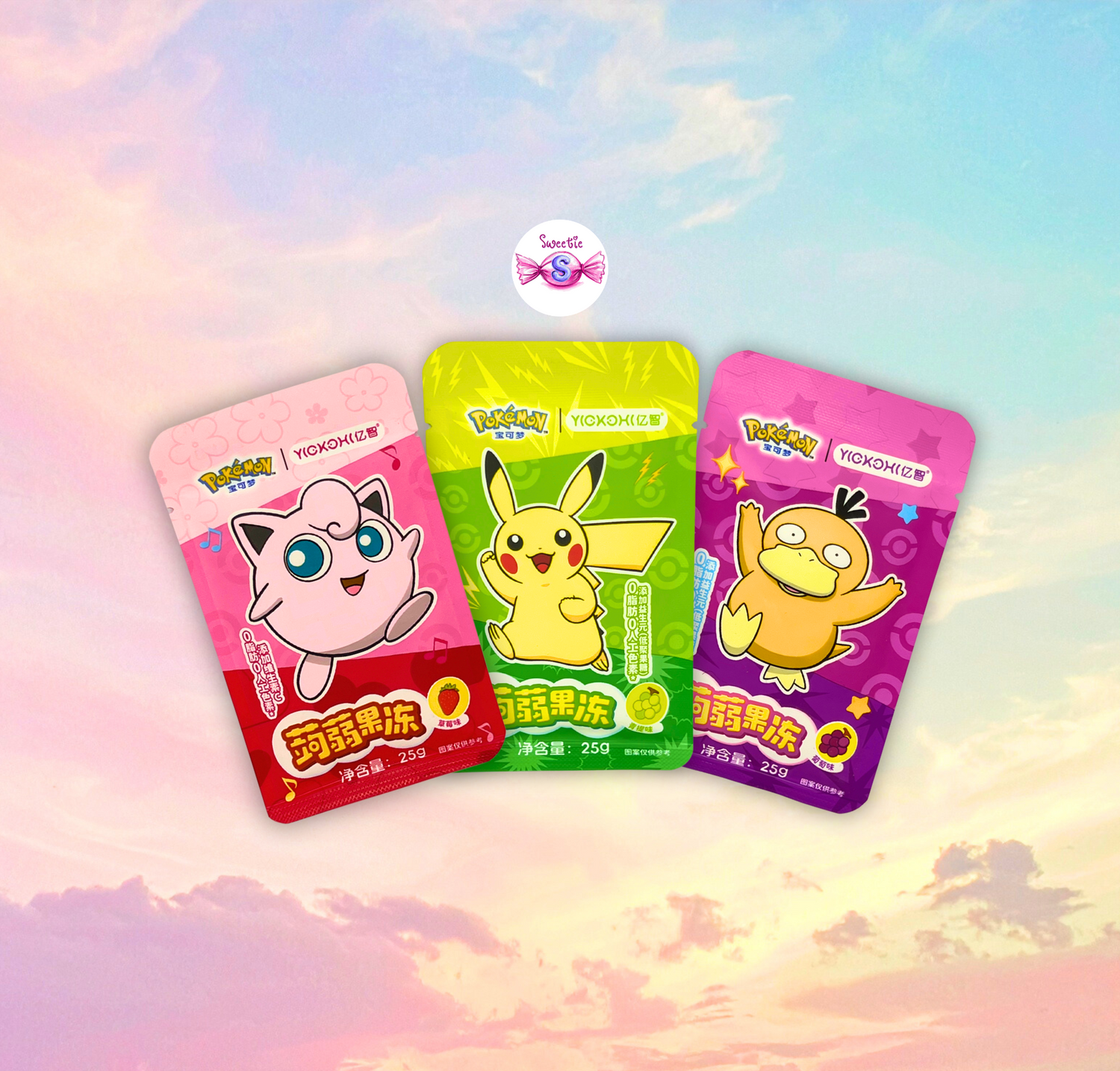 Yizhi Pokémon Jelly jsou ochucené konjakové želé s motivy Pokémonů, ideální jako osvěžující a nízkoenergetická svačinka. Každý sáček obsahuje ovocné cucací želé!⭐️